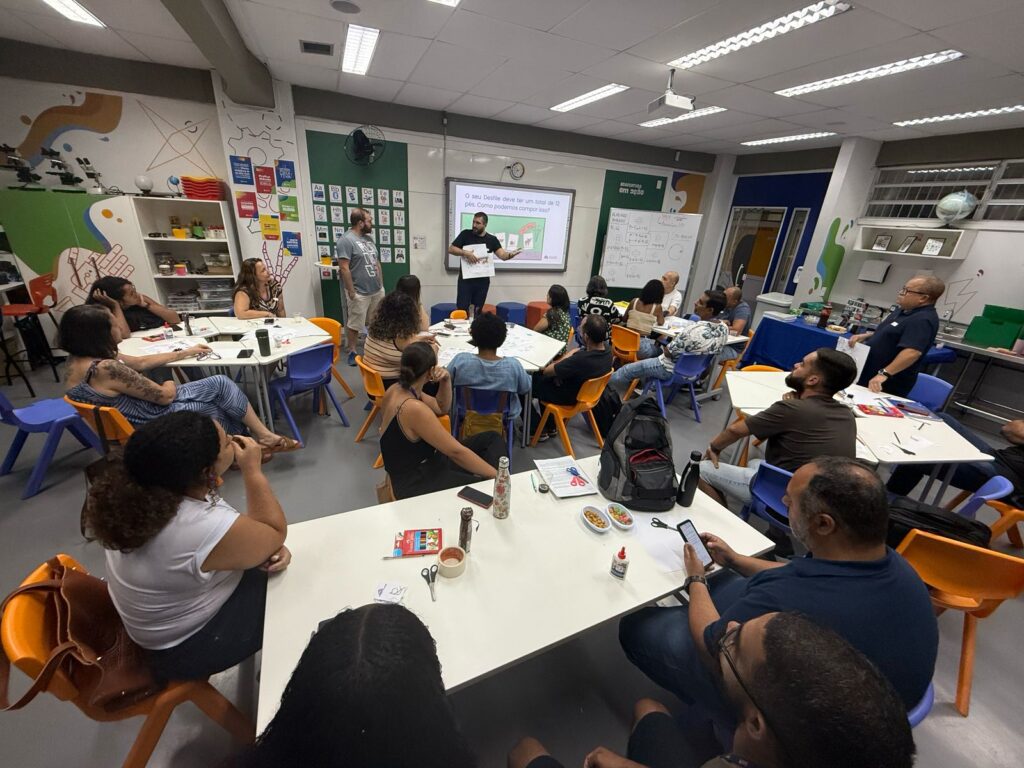 Quando visitei uma aula de maker, falei com o professor, falei com as alunas e os alunos, e todo mundo realmente estava bem animado para fazer essas atividades e por ter mais espaço para explorar ideias. Estou na formação falando com docentes e, mais do que tudo, escutando quais são as suas experiências. Temos nos docentes parceiros e parceiras para que possamos descobrir como melhorar.